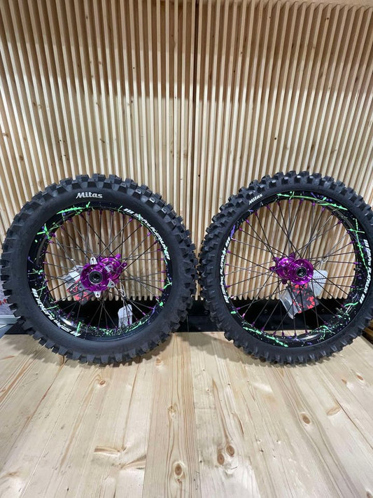 SM PRO SUR RON WHEEL SET 19/16" SPLATTERKOTE PURPLE/GREEN COMBO