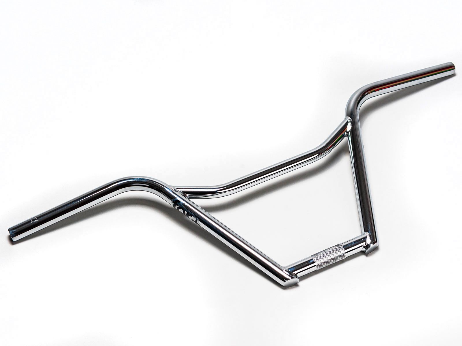 These 4+ bars are crafted from the finest 4130 chromoly tubing available before being heat treated making them very strong and durable. They are super tall at almost 10” and therefore perfect looking slick when cruising. The 4+ bars improve the handling characteristics of the Dragster, making it smoother through turns and more stable at high speed. They also look super-clean, with perfect tig welds and smooth mandrel bends. The dipped cross bar is a real retro treat!! Available in chrome or ED black.