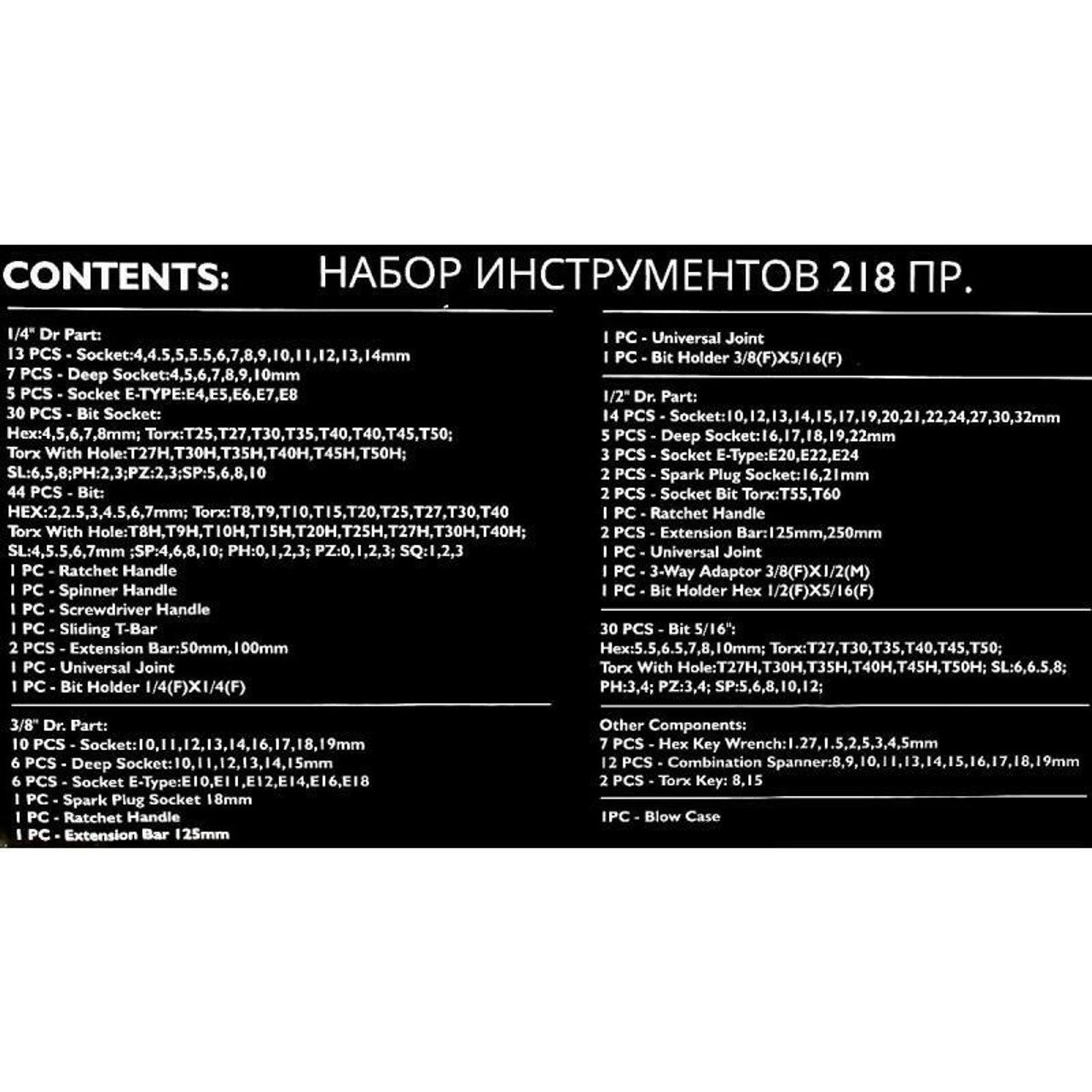 - 30pcs 5/16" drive: PH: 3,4; PZ: 3, 4; FD: 6, 6.5, 7, 8mm.