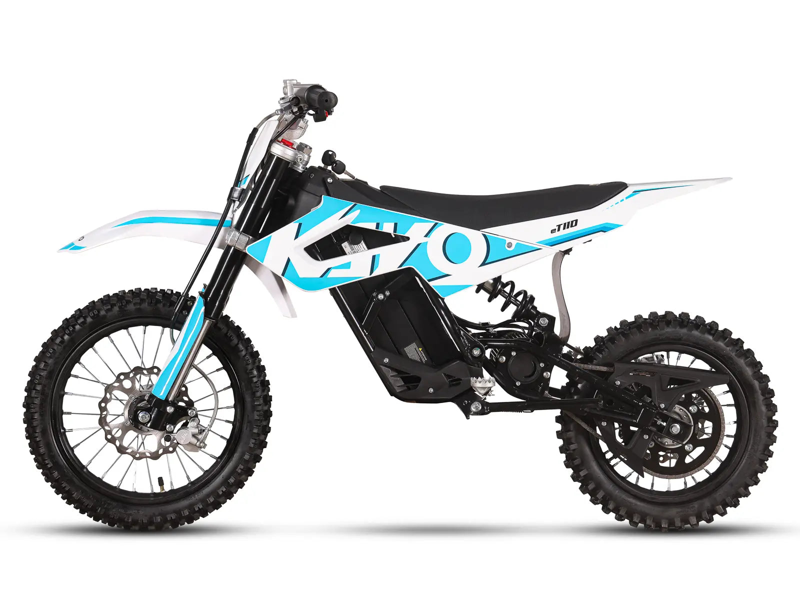 The battery can be charged in 5.5 hours and purists will be excited to see this bike uses proper pit bike brakes as opposed to MTB brakes. Kayo is renowned for affordable quality with class leading performance and the eT110 ticks all these boxes (with a few surprises thrown in). 1 year warranty on the Battery/Motor/Controller for peace of mind.