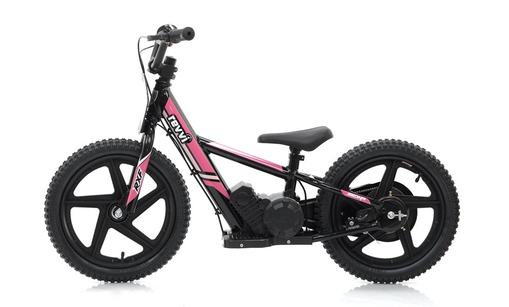 A super light electric-powered motor bike that has been specifically designed for kids, Weighing in at only 11kg's. The bike can be used as a conventional balance bike when learning to balance with its specially designed free wheel system. Then watch the rider improve and progress onto the slow speed setting (8mph) balancing on there own using the foot pegs. Perfecting there throttle control at the same time using the bikes twist throttle. Once they are confident using the slow speed setting they can then progress to the fast speed setting (12mph). Features hybrid rubber air filled tyres suitable for various ground types & a chain-driven motor that delivers reliable performance.