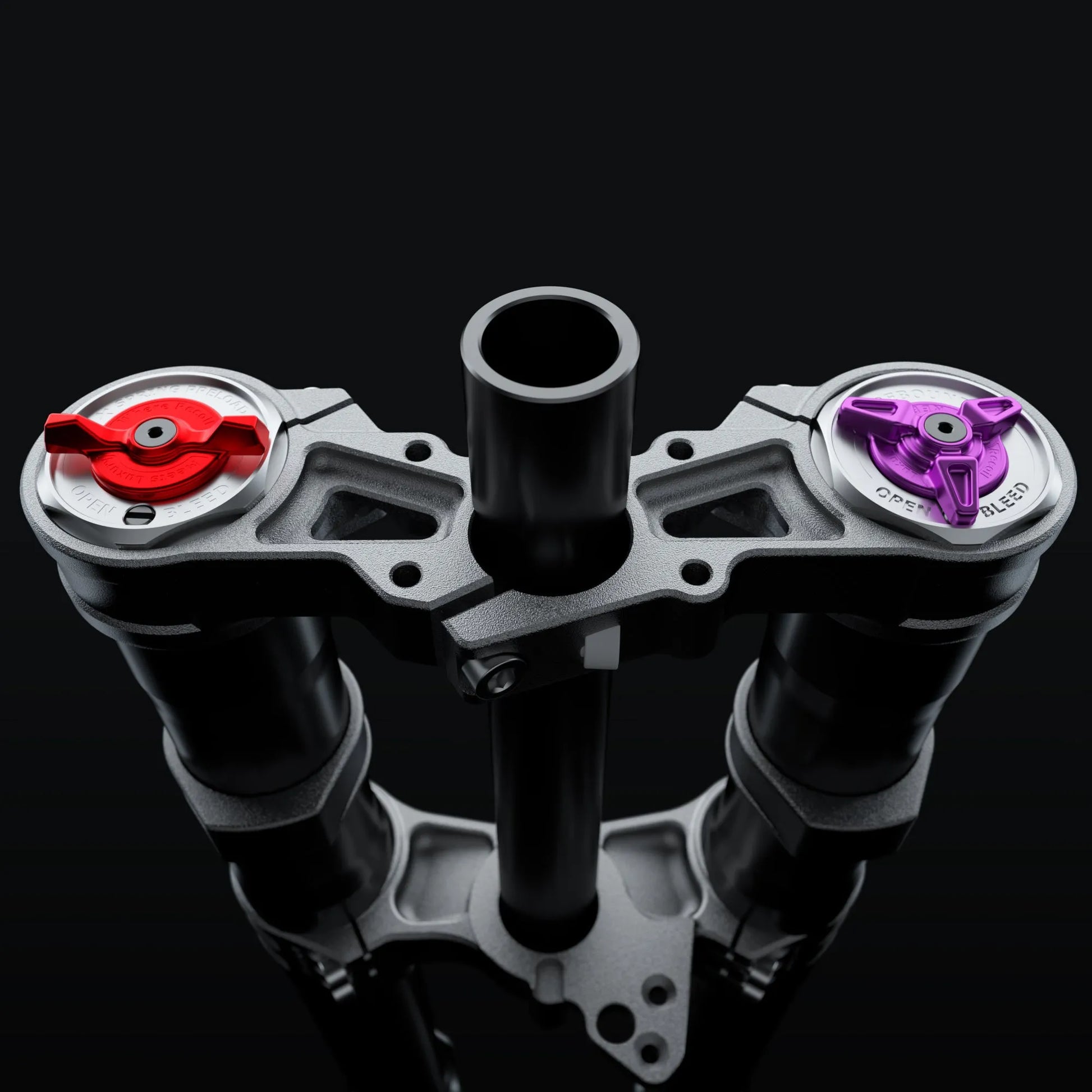 ⣠Customizable Tuningš„ -- The fork's multi-stage adjustments, including high-speed compression, low-speed compression, rebound, and spring preload, are controlled by easy-to-access manual knobs. This feature ensures quick and precise tuning for optimal performance and comfort in diverse riding environments.