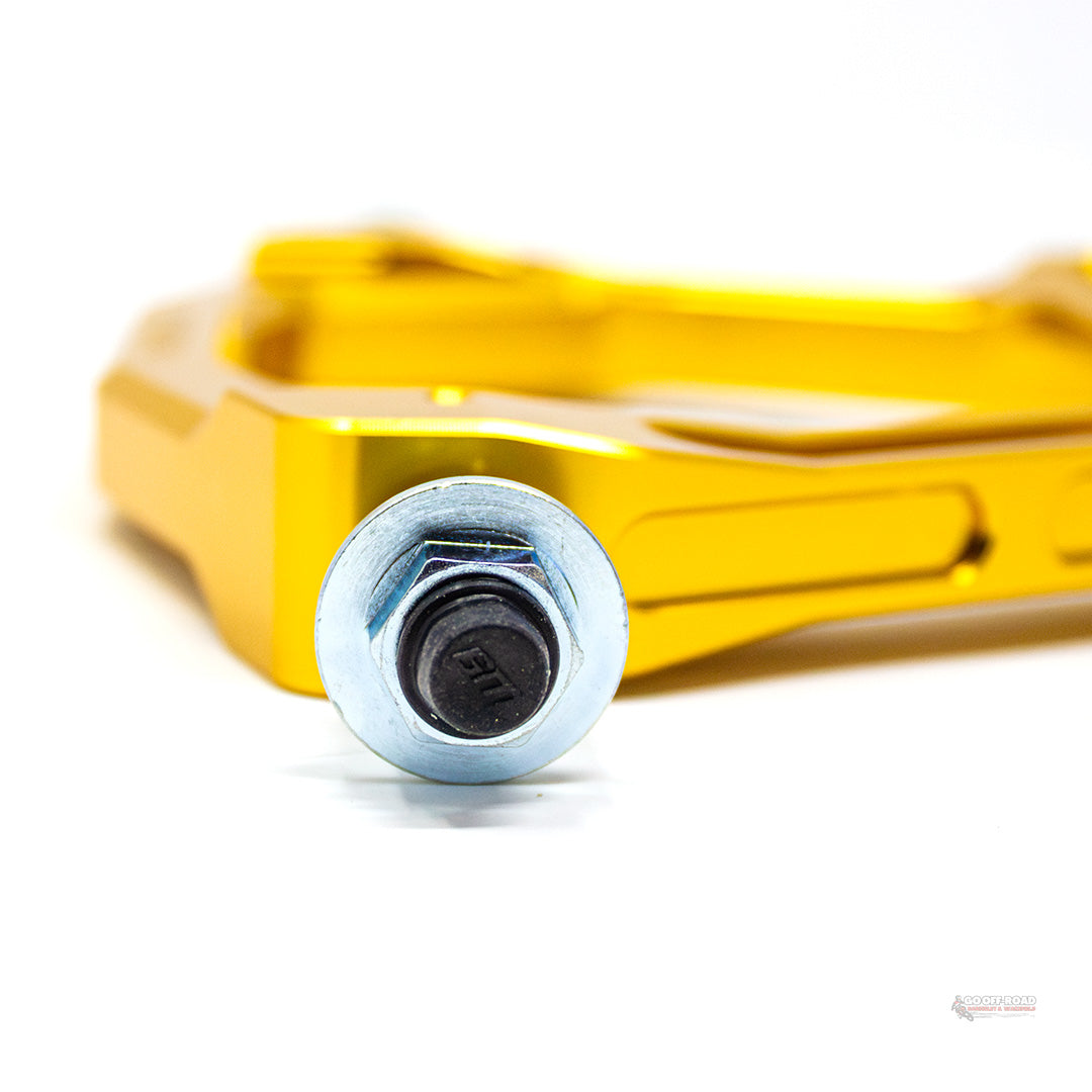 Upgrade your Sur Ron Ultra Bee with our Warp 9 Suspension Triangle! Unlike the Light Bee, the Ultra Bee has metal-on-metal bushings that need regular lubrication. Our suspension triangle comes with special bolts featuring grease zerk fittings, making it easy to keep your frame bushings smooth and long-lasting.
