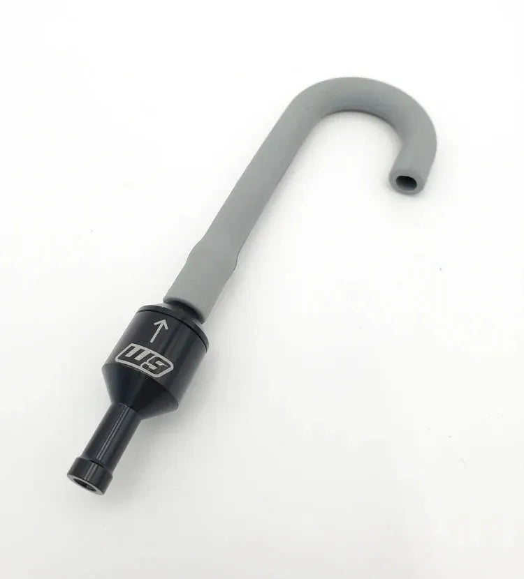 a CNC anodised check valve keeps the oil in your gear case when the bike falls over but still allows airto flow when under pressure from heat expansion and contraction.