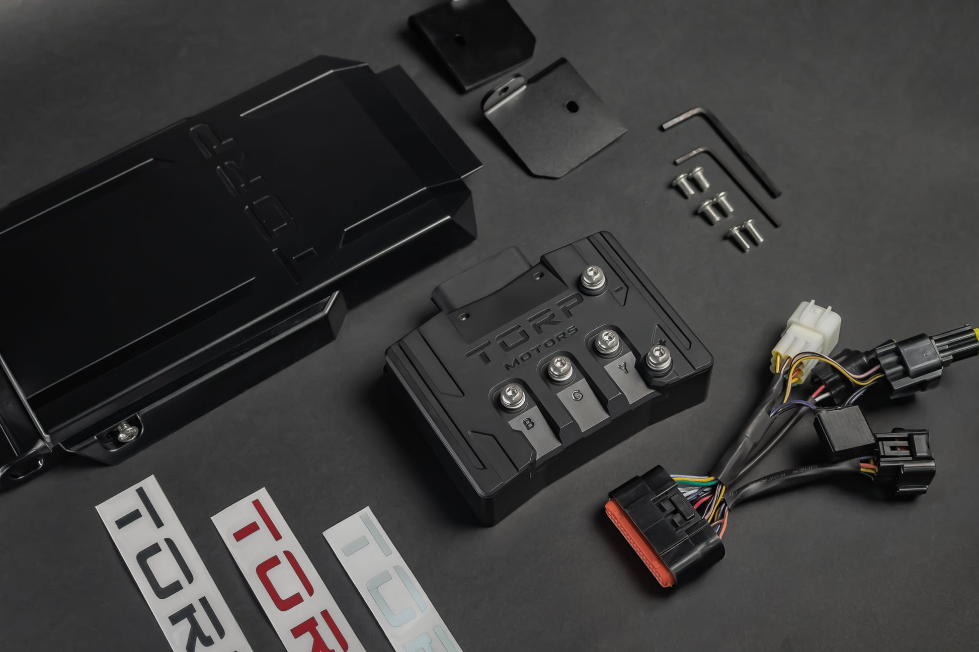 With Torp controllers, all stock Talaria features will be preserved (stock Talaria Display, kick-stand sensor, crash sensor, power mode button, and brake switch) except for the start button.